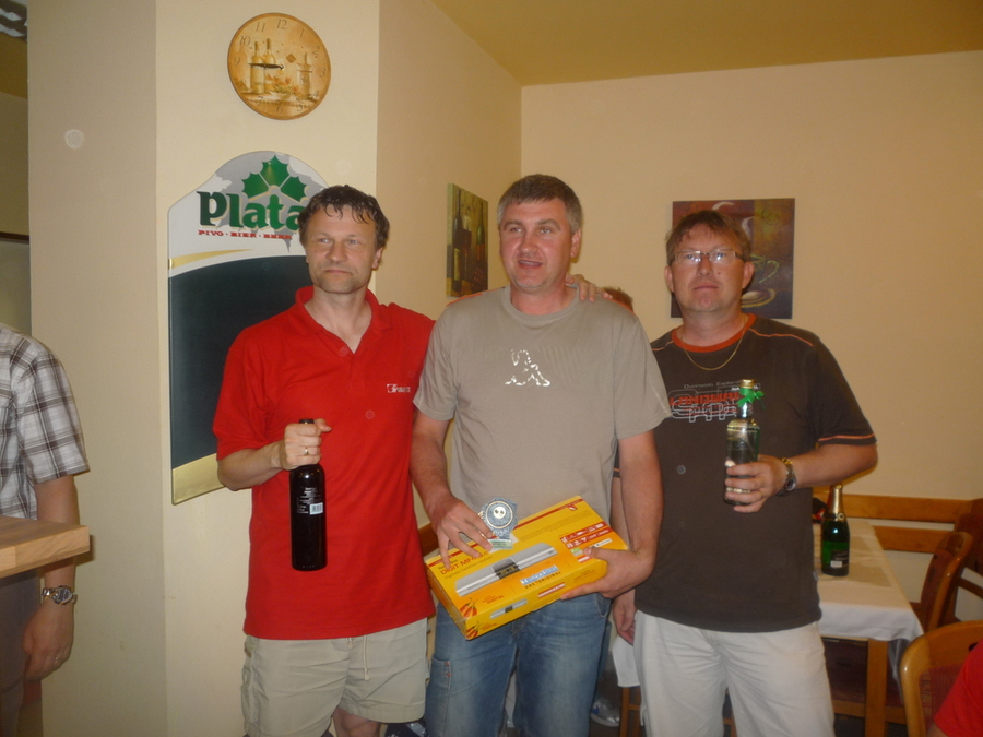 Vyhlášení jednotlivců - zleva 2. místo Michal Zatloukal, 1. místo Pavel Hrůza, 3. místo Zdeněk Šálený