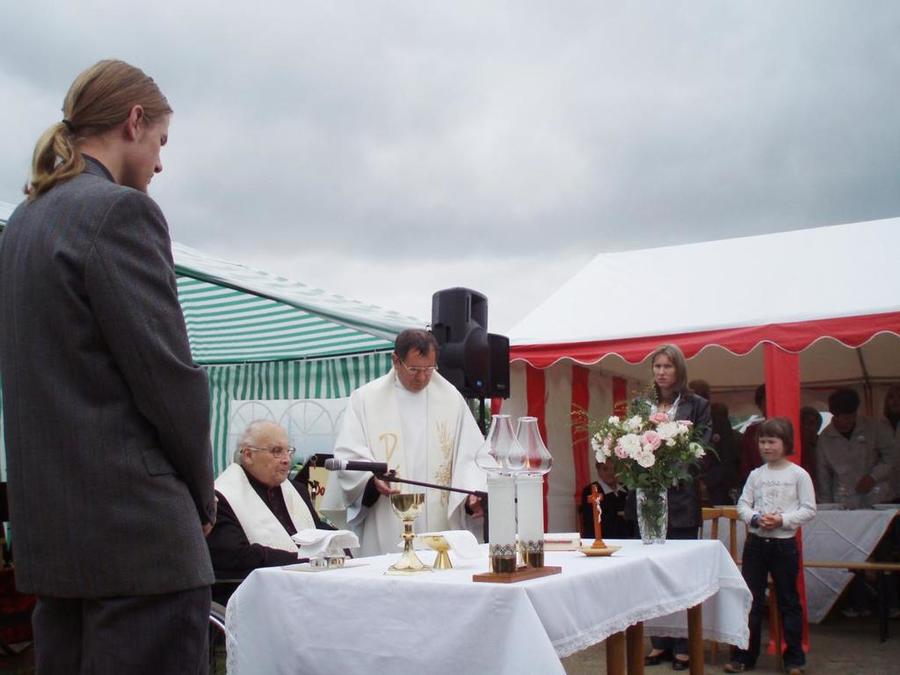 Nejstarší účastníci spolu s panem starostou a místním občanem panem Zdeňkem Šáleným